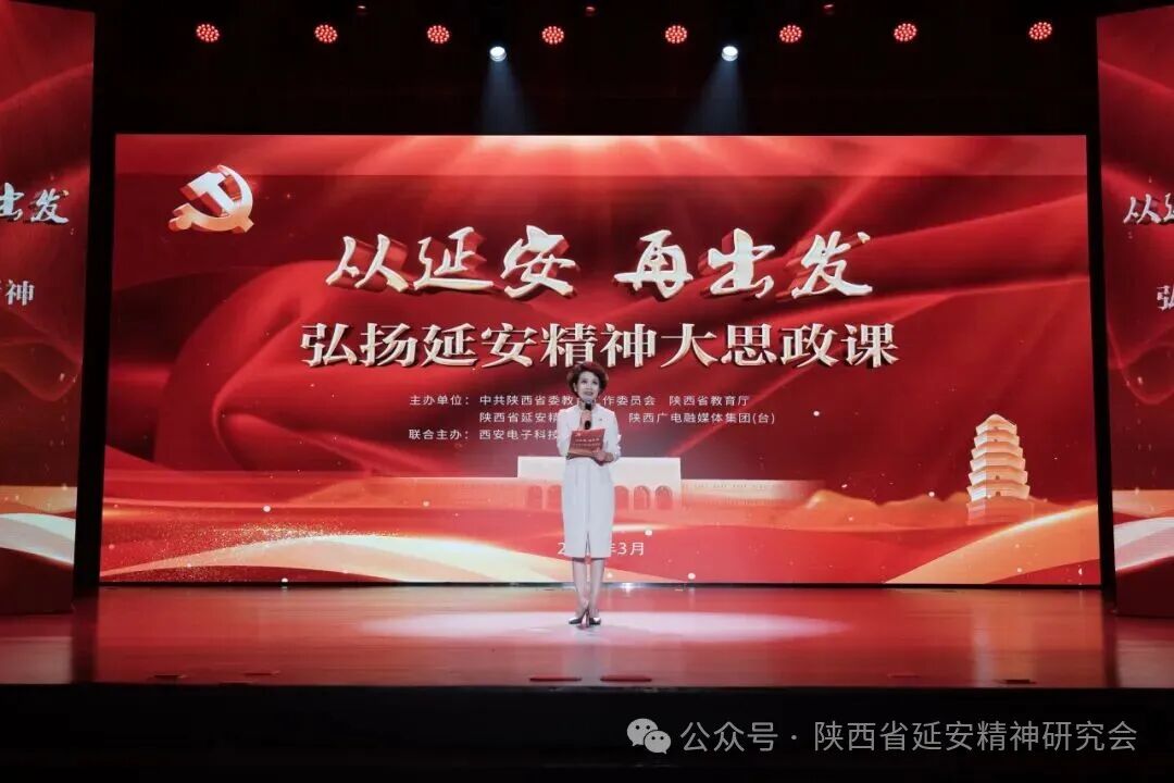 为进一步学习贯彻党的二十届四中全会精神,贯彻落实习近平总书记关于弘扬延安精神的重要指示重要讲话精神和历次来陕重要讲话精神,深入落实省委十四届九次全会精神,大力弘扬延安精神,进一步推动延安精神进校园工作,守正创新推动全省高校思想政治工作高质量发展,3月24日,由中共陕西省委教育工作委员会、陕西省教育厅、陕西省延安精神研究会、陕西广电融媒体集团(台)主办,西安电子科技大学联合主办的“从延安 再出发”弘扬延安精神大思政课在西安电子科技大学开讲。