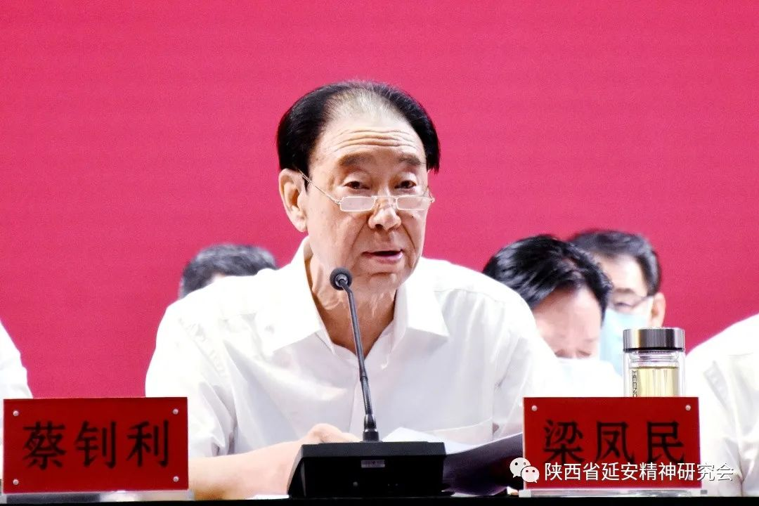 会议开幕式由陕西省延安精神研究会第四届理事会会长梁凤民主持,陕西省社科联党组书记、常务副主席郭建树同志宣读换届批复;中国延安精神研究会办公室副主任于隶群同志宣读贺信;中共陕西省委党校(陕西行政学院)常务副校(院)长蔡钊利同志致辞。