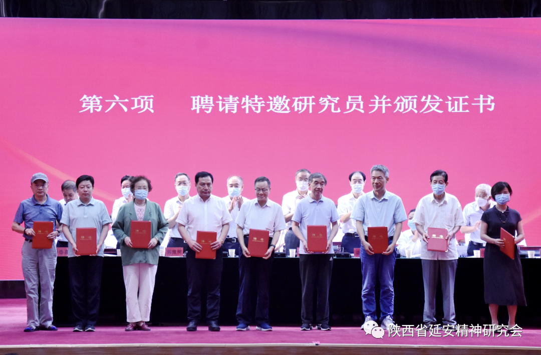 大会通过了陕西省延安精神研究会《章程》修改的说明、第四届理事会财务审计报告以及关于第五届理事候选人的说明,会议选举产生32名同志为常务理事,刘斌、张文波、郭润芝、姚文琦、周德喜、康仲涛、宦洁、赵志祥、王东、史俊琴、梁星亮11位同志为副会长,周德喜兼任秘书长。会上为特邀研究员颁发了聘书。梁宏贤会长作了讲话。