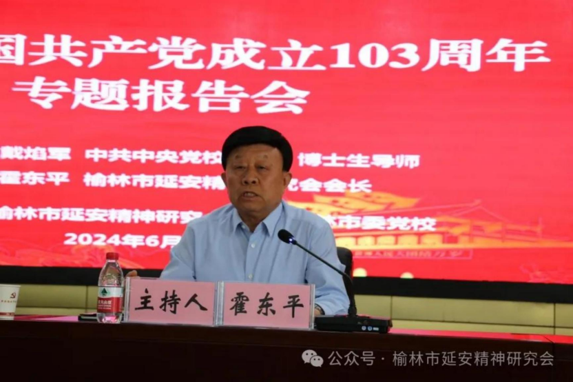 6 月 28 日 , 为 庆 祝 中 国 共 产 党 成立 103 周 年 , 榆 林 市 延 安精 神 研究 会 和 榆 林 市 委 党 校 联 合 举 行 专 题 报 告 会 , 邀 请 中 共中 央 党 校 教 授 、 博 士 生 导 师 戴 焰军 作 “ 弘 扬 延 安 精 神 推 进 党的 自 我 革 命 ” 专 题 报 告 。