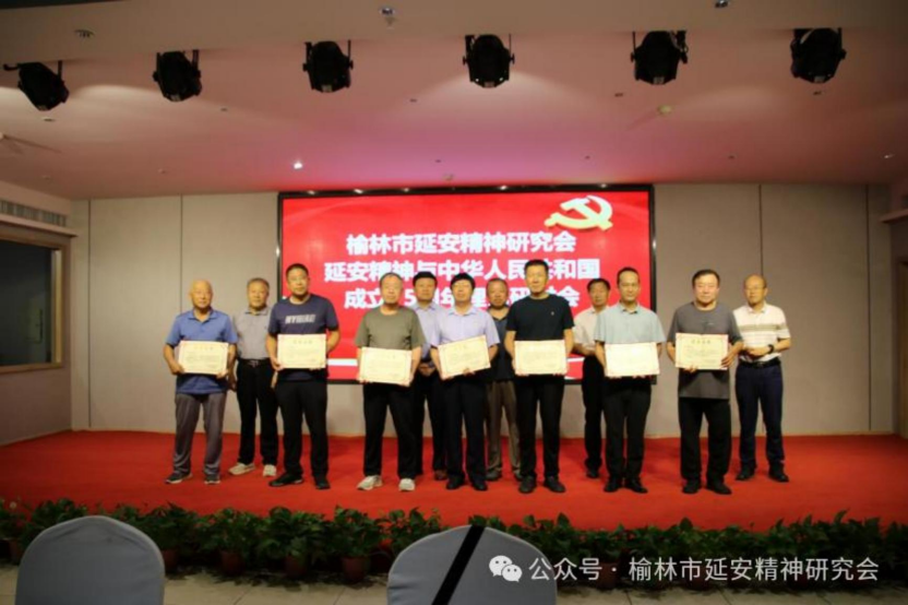 8 月 9 日,榆林市延安精神研究会在榆举行延安精神与中华人民共和国成立75 周年理论研讨会 。 会长霍东平 , 副会长张晓明、 王文斌、 加建新 , 理事高林、 王东红 , 各专委会负责人、 驻会人员、 部分会员及获奖论文作者等60余 人参加会议。