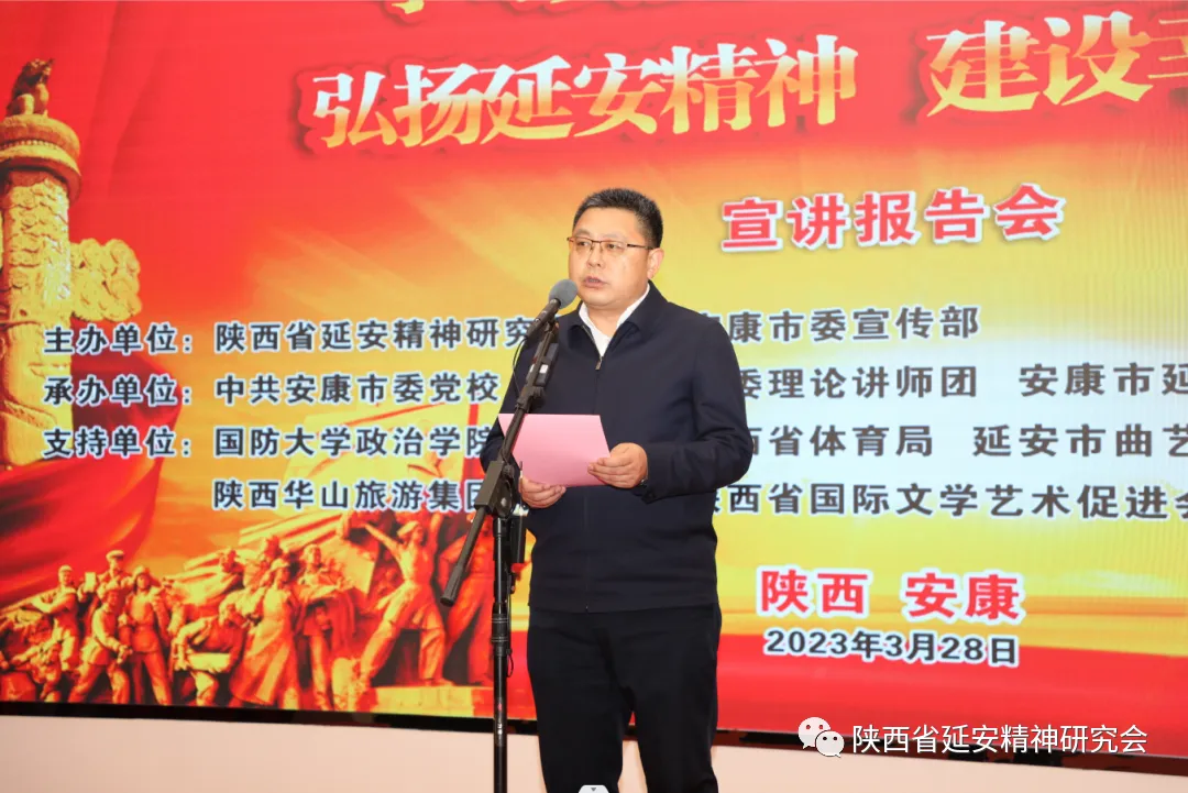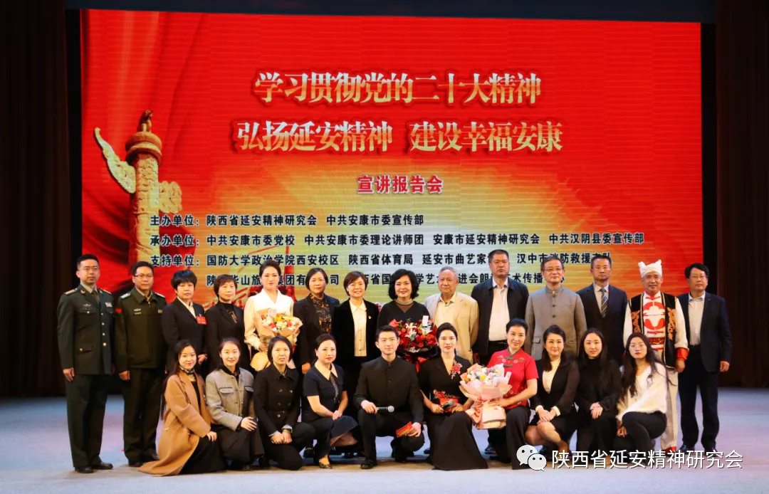 3月27日-3月31日,为深入学习贯彻党的二十大精神和习近平总书记瞻仰延安革命纪念地时的重要讲话精神,大力弘扬伟大建党精神和延安精神,陕西省延安精神宣讲团受邀走进安康市、汉滨区、石泉县、汉阴县、平利县、旬阳市,与安康市委宣传部共同开展了以“学习贯彻党的二十大精神 弘扬延安精神 建设幸福安康”为主题的延安精神宣讲报告会,安康市委各部门、市级国家机关部门,各延安精神研究会会员代表、驻军代表、高校及中小学生等共计上万人通过线下观看和现场直播的方式观看宣讲,与会人员深受教育鼓舞,在全市引起热烈反响。