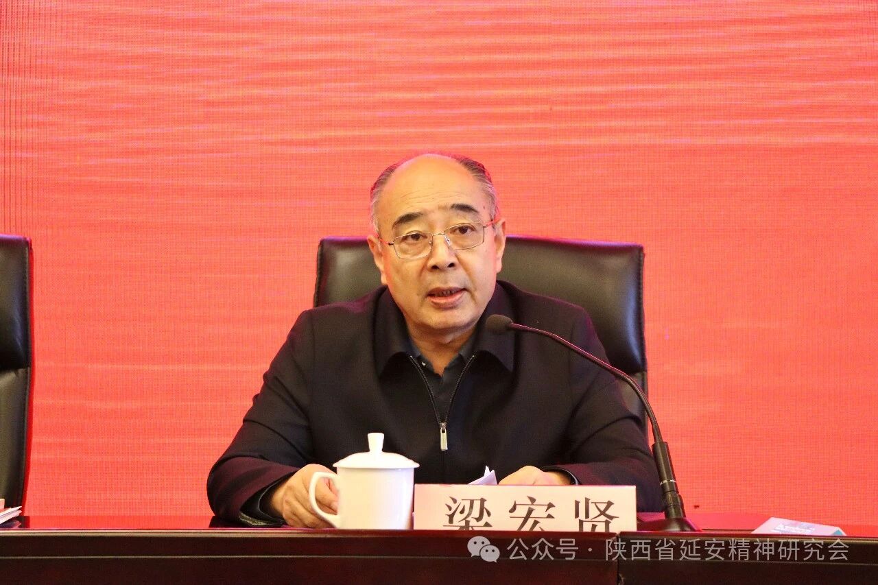 2024年4月25日,陕西省延安精神研究会五届二次理事会暨弘扬延安精神工作推进会在延安召开。省延安精神研究会会长梁宏贤出席会议并讲话。省委党校(陕西行政学院)副校(院)长师晨旭,延安市委常委、宣传部部长杨宏兰出席会议。省延安精神研究会副会长、秘书长、副秘书长,各内设机构负责人,省研究会理事代表,各市(区)研究会会长、秘书长,省研究会办公室全体干部及媒体代表共计70余人参加会议。
