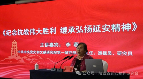 今年是中国人民抗日战争暨世界反法西斯战争胜利80周年,今年10月26日是毛泽东主席给延安和陕甘宁边区人民《复电》76周年纪念日,也是中共陕西省委确定的第36个“全省延安精神纪念日”。报告会上,李蓉研究员从延安精神的形成和中国抗日战争的历史紧密相连;延安精神为抗战胜利提供了正确指导和精神支持;纪念抗战胜利,继承和弘扬延安精神等方面深刻阐释了延安精神在抗战烽火中的孕育、形成及其发挥的关键作用,并就如何在新时代继承和弘扬延安精神提出了独到见解。
