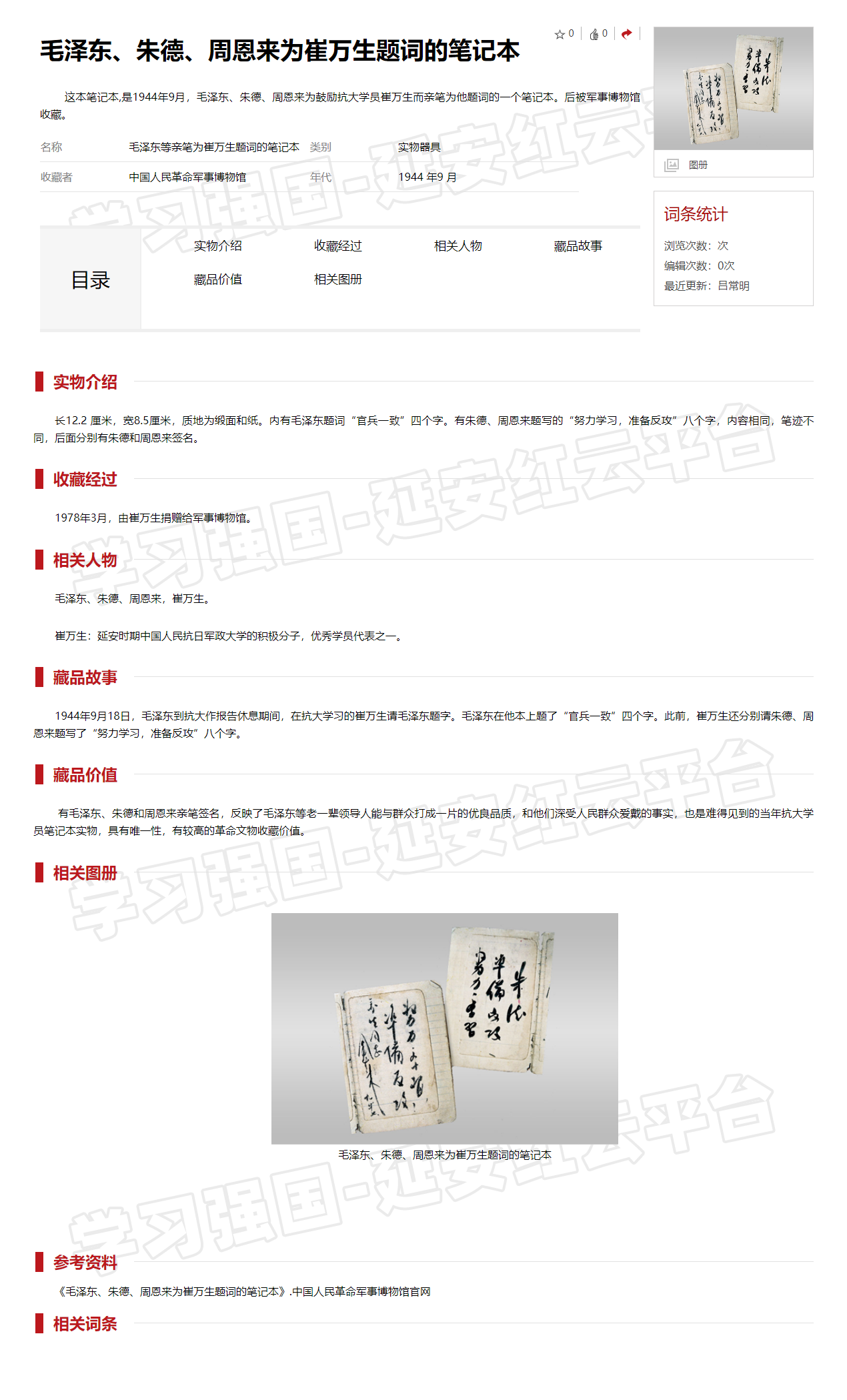 毛泽东、朱德、周恩来为崔万生题词的笔记本