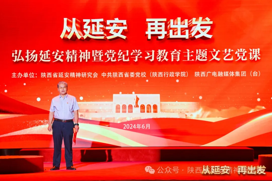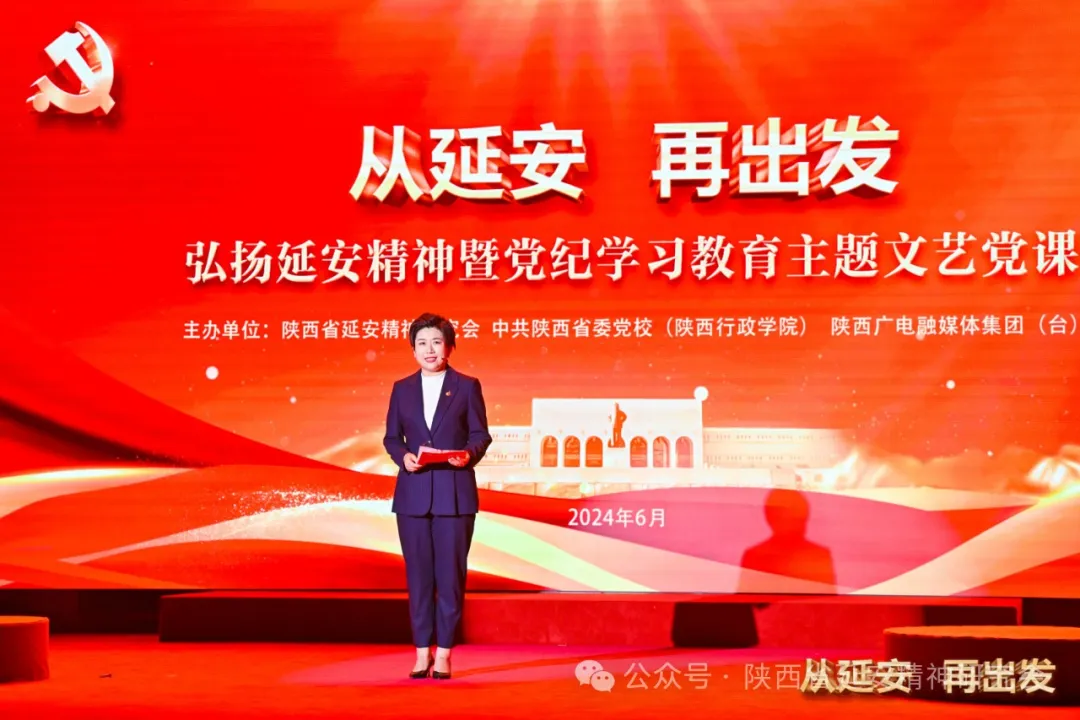6月19日,由陕西省延安精神研究会、省委党校(陕西行政学院)、陕西广电融媒体集团(陕西广播电视台)共同策划的弘扬延安精神暨党纪学习教育主题文艺党课——《从延安 再出发》在陕西省委党校(陕西行政学院)成功首演。