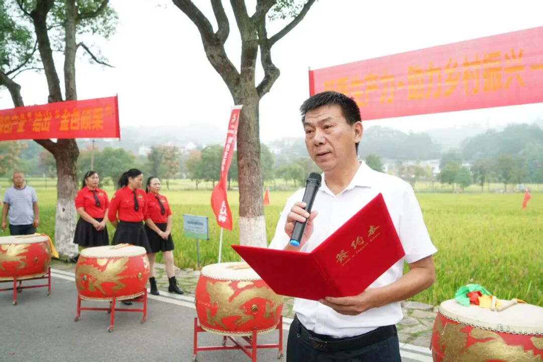 在“秋收稻谷香,共富韶山田”活动仪式上,韶山村党委书记毛春山致欢迎词。韶山村村民精彩的民俗节目表演获得了来宾和游客的阵阵掌声。