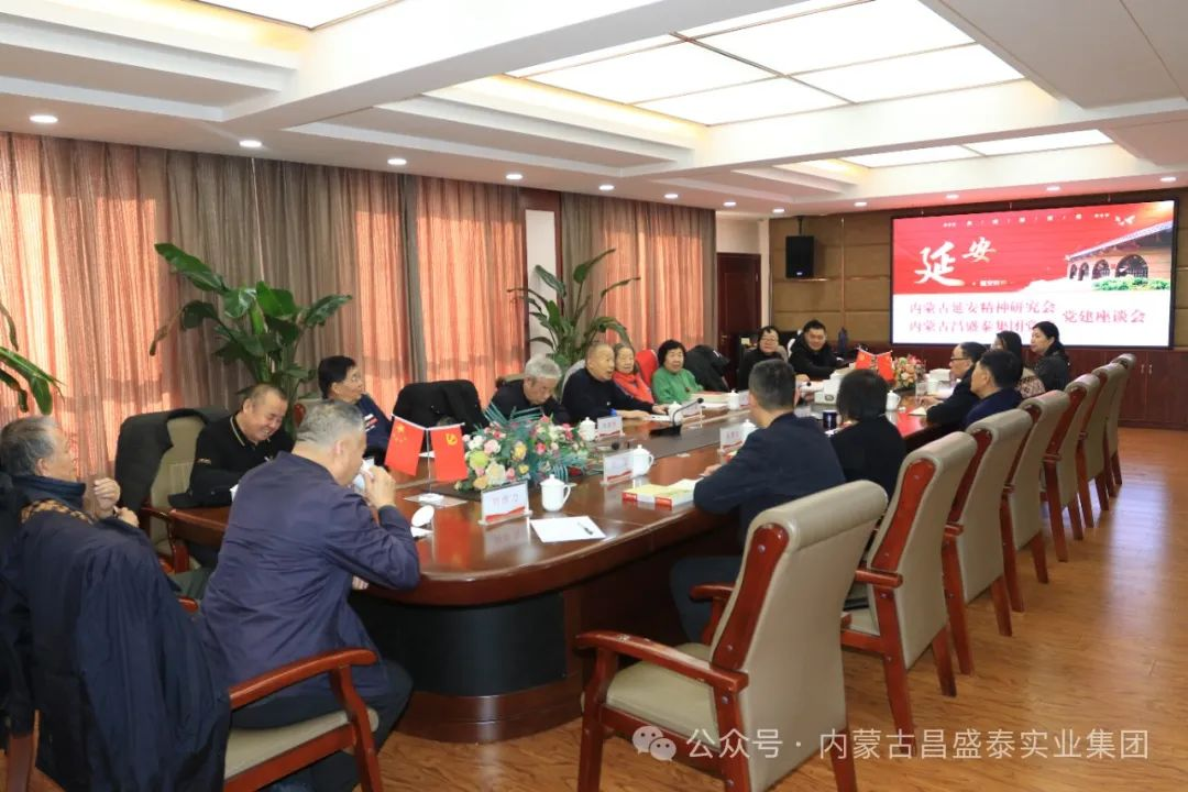 1月23日上午,内蒙古延安精神研究会与内蒙古昌盛泰集团党委在昌盛泰集团举行党建座谈会。内蒙古延安精神研究会常务副会长赵如意、副会长阿木兰、副会长奇牡丹、秘书长云小青、理事刘建禄和部分会员代表,昌盛泰集团党委书记薛荣跃及党委成员参加了座谈会。