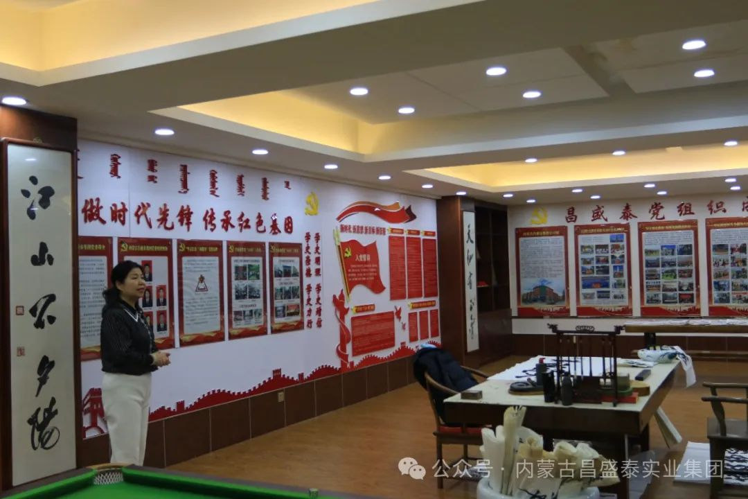 内蒙古延安精神研究会一行参观了昌盛泰集团党建阵地,集团党委副书记于俊麟介绍了企业在经营实践中,把“企业党建”和“社会责任”嵌入企业治理,形成了“现代企业制度 + 企业党建 + 社会责任”三位一体的中国特色现代企业制度。其中,“现代企业制度”是基础,通过规范企业行为,打造企业文化,激发内在动力,提高运行效率;“企业党建”是灵魂,把党的方针政策学习贯彻到位是民营企业发展壮大的机遇;“社会责任”是使命,通过树立以人民为中心的发展思想,优化企业生态环境,促进社会稳定和谐,扎实推进共同富裕。