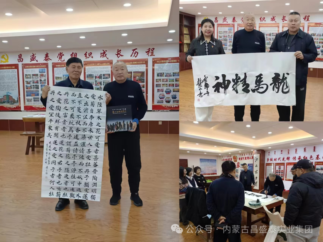 交流会中双方就加强合作,红色文化等问题深入交流,为下一步合作奠定了良好的开始。最后,内蒙古延安精神研究会向昌盛泰集团党委赠送了书籍,副会长赵如意向昌盛泰集团赠送了书法作品及文创纪念品。