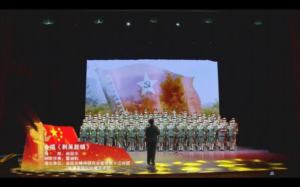 云南省延安精神研究会 13 个宣讲团、红色文化分会、东方分会参 加此次演出,参演人员 800 多人。参演的节目有《把一切献给党》、《没 有共产党就没有新中国》、《百年守望》、《我们的祖国歌美花香》、《七 月的骄阳》、《到吴起镇》、《壮美延安》、《我爱你中国》、《国歌响起》、 《五星红旗畅想》、《灯火里的中国》、《千里江山 澈爱中国》、《向往》 等。由 16 个中小学生演出的大型情景朗诵《千里江山 澈爱中国》声 情并茂,赢得全场观众一阵阵热烈的掌声。此次文艺展演表达了云南各族人民对党和国家的热爱和对美好生活的歌颂,祝愿伟大祖国在新 时代、新征程上赢得更加伟大的胜利!