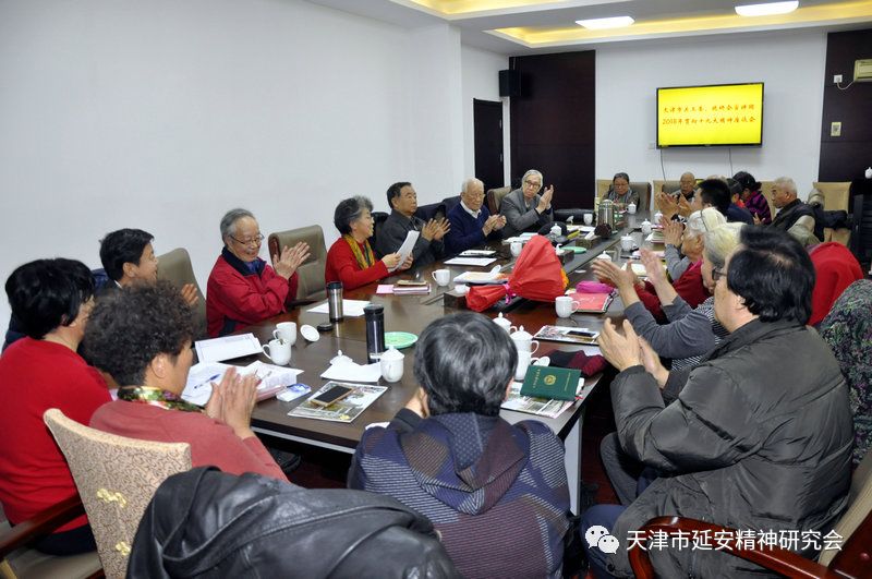2018年1月17日上午,天津市关心下一代工作委员会、天津市延安精神研究会老干部宣讲团召开2018年座谈会,学习贯彻十九大精神。市延安精神研究会会长、市关工委常务副主任李润兰,老同志房凤友、何国模出席会议。全国道德模范、最美“五老”王辅成,天津市新华中学团委书记徐春晖在会上发言。
