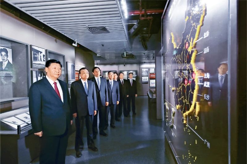 2017年10月31日,中共中央总书记、国家主席、中央军委主席习近平带领中共中央政治局常委李克强、栗战书、汪洋、王沪宁、赵乐际、韩正,瞻仰上海中共一大会址和浙江嘉兴南湖红船。这是31日上午,习近平等在上海中共一大会址纪念馆参观。新华社记者 兰红光/摄