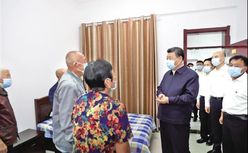 9月13日至14日,中共中央总书记、国家主席、中央军委主席习近平在陕西省榆林市考察。这是14日下午,习近平在绥德县张家砭镇郝家桥村互助幸福院,同村里的老人亲切交流。新华社记者 李学仁摄