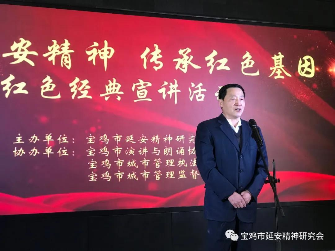 为深入学习贯彻党的十九届六中全会精神,传承红色基因,赓续红色血脉,助力宝鸡髙质量发展,12月7日下午,由宝鸡市延安精神研究会主办,宝鸡市演讲与朗诵协会、宝鸡市城市管理执法局、宝鸡市城市管理监督指挥中心协办的“弘扬延安精神·传承红色基因”主题宣讲活动在市行政中心C座举行。