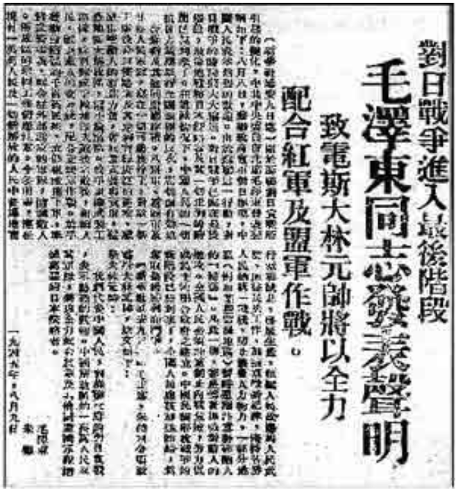 1945年8月9日,毛泽东发表《对日寇的最后一战》