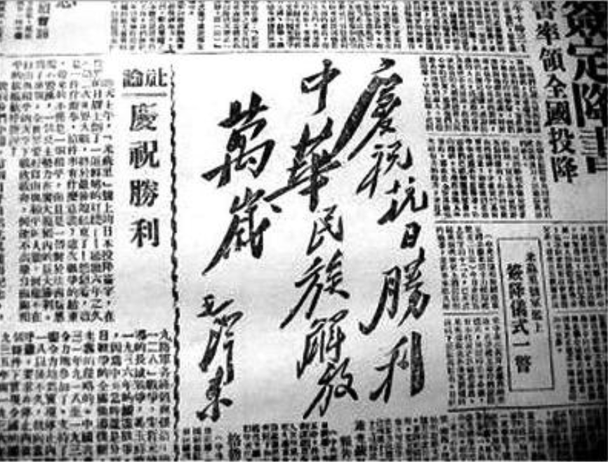 1945年9月3日出版的《新华日报》刊登了毛泽东写的庆祝抗战胜利题词