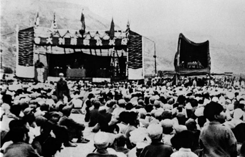延安各界2万群众在南门外广场集会,庆祝抗日战争取得胜利