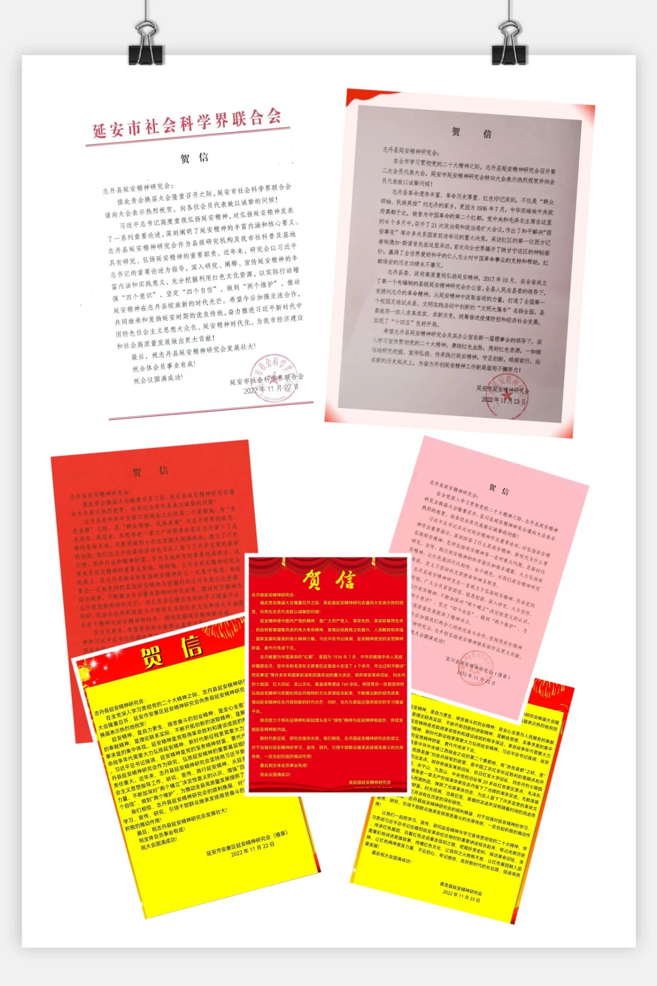 延安市社科联及安塞、吴起、延长、宜川和黄龙等县区的延安精神研究会分别发贺信,祝贺大会胜利召开。