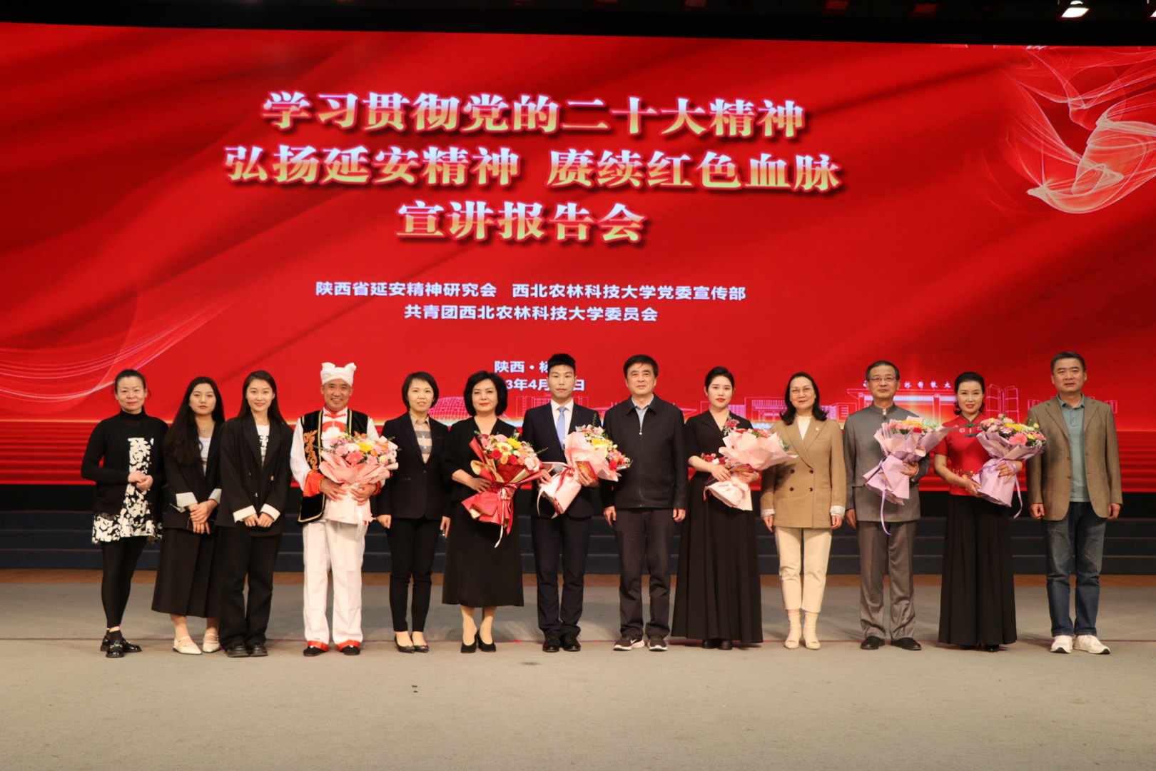 4月10日至4月13日,为深入学习贯彻党的二十大精神和习近平总书记瞻仰延安革命纪念地时的重要讲话精神,大力弘扬伟大建党精神和延安精神,引导广大青少年继承革命传统,树立远大理想,点燃心中之火,争做时代新人。陕西省延安精神研究会与西安市教育局、西安文理学院共同主办了以“学习贯彻党的二十大精神 弘扬延安精神 赓续红色血脉”为主题的延安精神进校园宣讲活动,分别走进西安市第三中学、西光中学分校、大兴新区初级中学和航天城第二中学;4月14日,宣讲团又受邀走进西北农林科技大学,开展延安精神主题宣讲活动,上万师生通过现场和直播的形式进行观看,与会人员深受教育鼓舞,本轮宣讲在全市引起热烈反响。