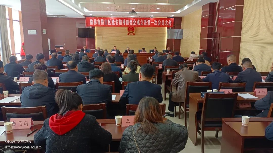 4月8日,横山区延安精神研究会成立大会暨研究会第一次会员大会召开。市延安精神研究会副会长兼秘书长、市委原副秘书长高欣,市延安精神研究会宣传委成员、佳县县委宣传部原部长庄怀厚出席指导会议。区委副书记殷海舰、区人大常委会副主任张秉忠、区政府副区长毛献忠、区政协副主席曹继宏、区政协原主席黄永旺出席会议。区委办、区委组织部、宣传部、党校、区财政局、文旅局、教体局等相关单位负责人及区延安精神研究会筹备小组成员和全体会员参加会议。会议由殷海舰主持。