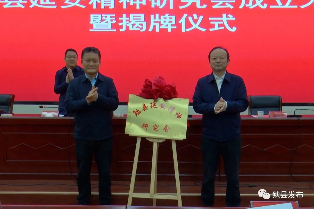 市人大常委会副主任、县委书记黎建军和市委宣传部二级调研员、市延安精神研究会副会长张瑞华为勉县延安精神研究会揭牌。