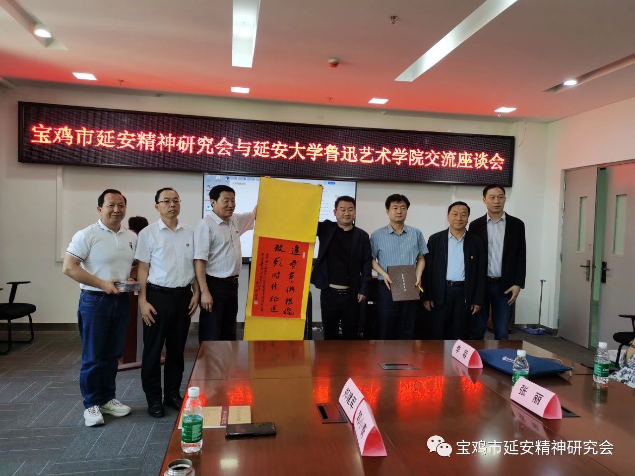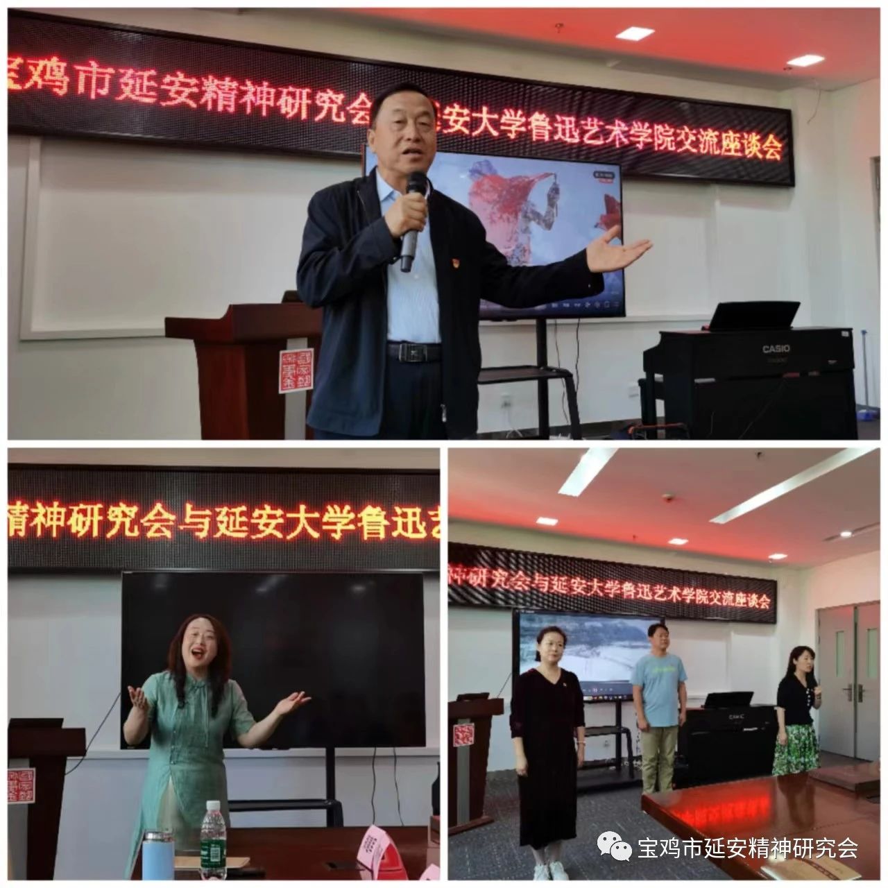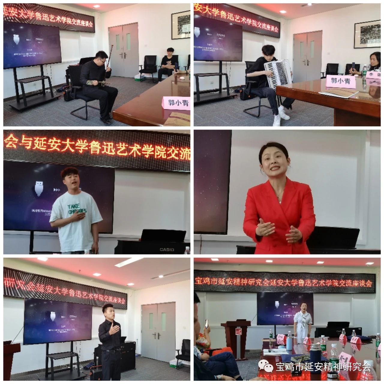 鲁艺学生为我们表演了歌曲、二胡独奏、手风琴独奏、陕北民歌,张丽老师为我们演唱了大家耳熟能详的《山丹丹开花红艳艳》,宝鸡宣讲团成员李伟、徐静、张晓娟表演了红色故事《永不消逝的声音》,姜浩平演唱了《芦花》,副会长刘一良演唱了《延安我的故乡》,一个个感人肺腑的节目,把交流座谈会推向高潮。期间,鲁迅艺术学院与宝鸡市延安精神研究会互赠礼物。