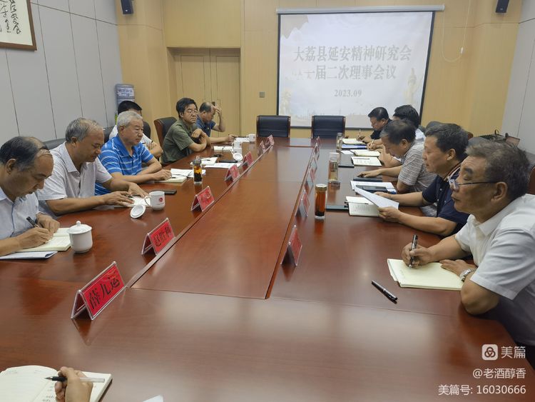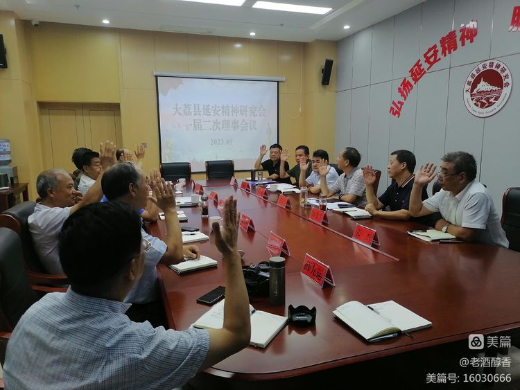 2023年9月5日,大荔县延安精神研究会召开一届二次理事会。会上,总结了上半年工作,安排部署了后四个月重点工作。通报了先前常务理事会对相关制度的修订完善情况以及对内设机构进行适当调整的情况。增选了一名常务理事,对部分理事的分工进行了调整。丁会长主持会议并做了总结讲话。