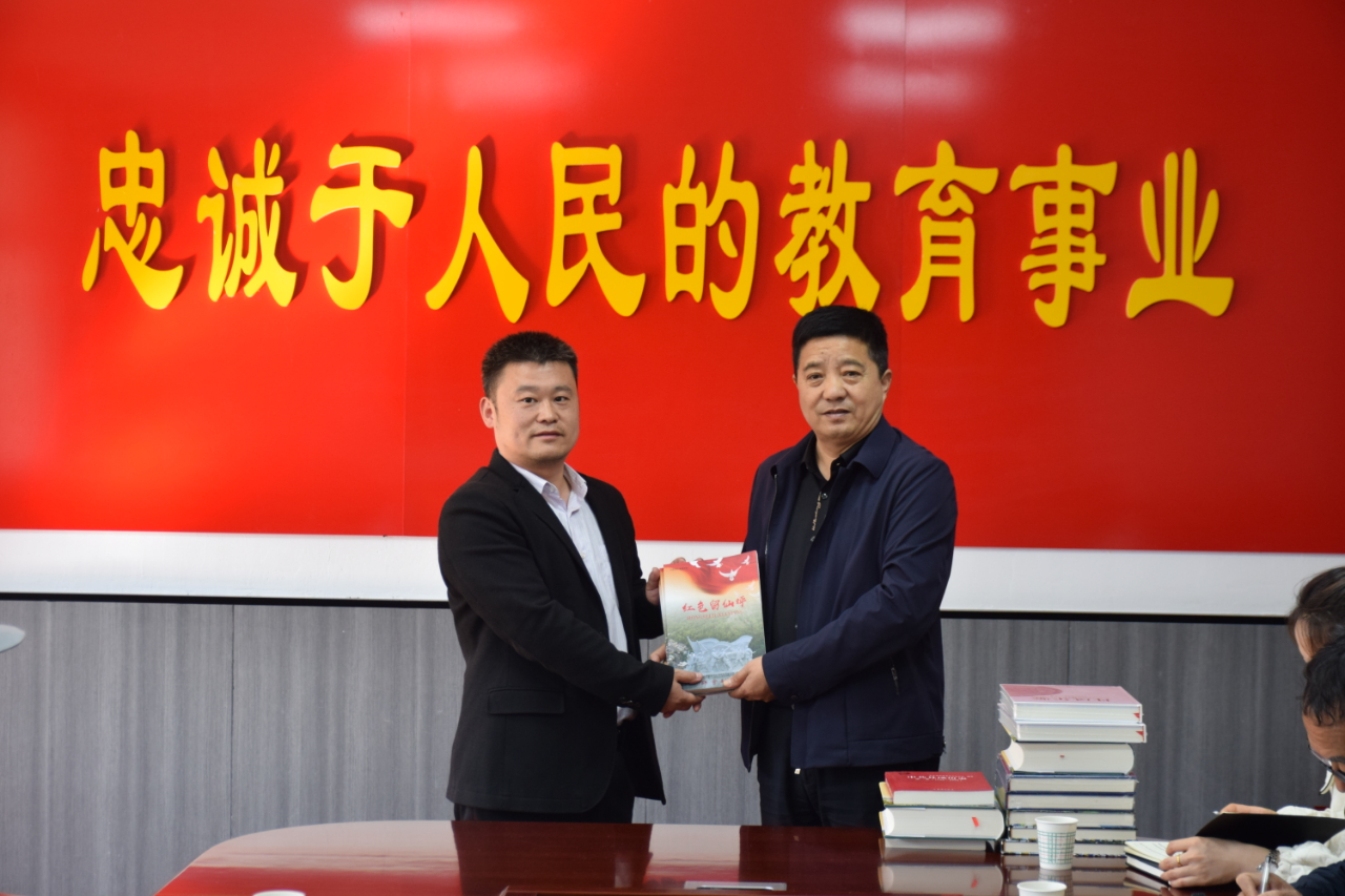 在随后召开的座谈会上,学校负责人介绍了红军小学红色教育日常活动开展情况,延安精神研究会负责人介绍了丹凤县延安精神研究会的宗旨、职责任务、工作思路等,结合所思所感,对学校今后的红色教育提出希望:继续打造红色校园文化,营造红色校园文化氛围,丰富活动载体,通过举办红色活动、开展红色文化课程等方式,让红色基因潜移默化地融入到学生的学习和生活当中,耳濡目染地了解和学习红二十五军历史,让红军长征精神一代一代传承下去。为红军小学赠送了《中共丹凤历史》第二卷、《红色留仙坪》《丹凤县志(1991-2010)》《丹凤年鉴》等10余部史志书籍。
