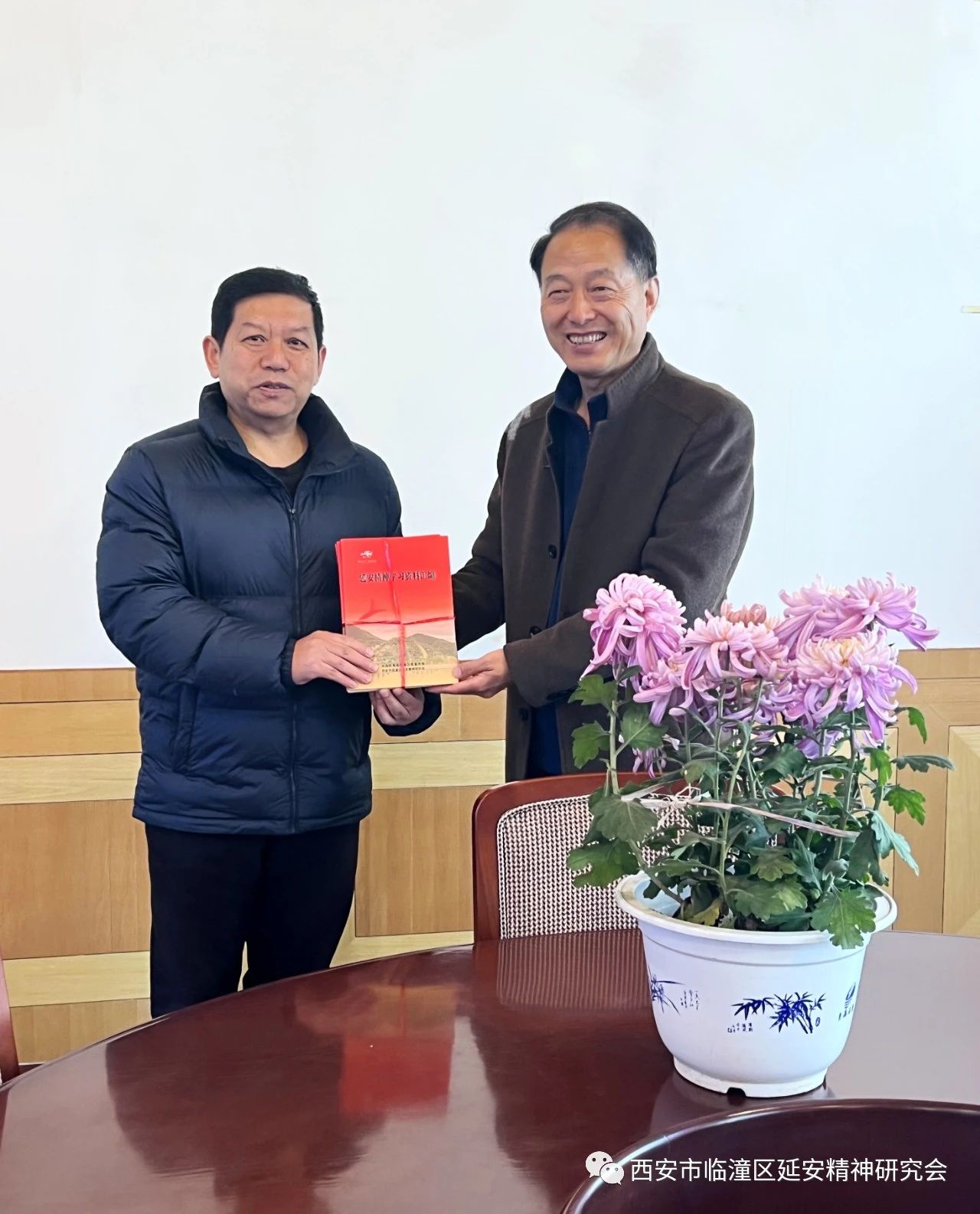 座谈会由张双学会长主持,一是王朝晖秘书长介绍了临潼会的情况,主要是成立以来所做的工作和成效;二是双方进行了交流座谈,就机构设置、组织建设、弘扬践行、办公经费等进行了充分交谈;三是临潼区延安精神研究会向灞桥区赠送了自己编印的两本书籍,分别是《延安精神学习资料汇编》、《西安市临潼区延安精神研究会成立资料汇编》。随后参观了研究会的办公场所。