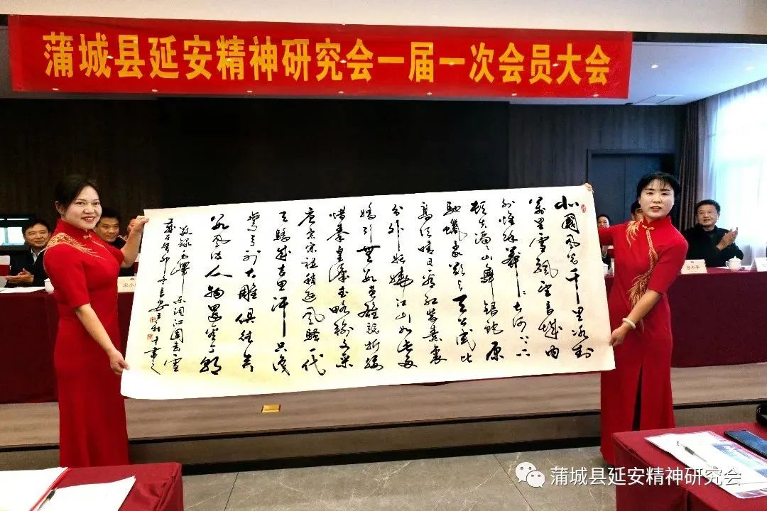 会上,屈小平同志报告了《蒲城县延安精神研究会挂牌以来的工作开展情况》,大会表决通过了《蒲城县延安精神研究会章程》《蒲城县延安精神研究会一届一次会员大会理事选举办法》。期间,对20家会员单位进行了授牌,接受了市延安精神研究会雷晓萌副会长、县延会单位会员陕西蒲城县民艺传承有限公司、县延会会员王新才赠送的书法作品和牌匾。
