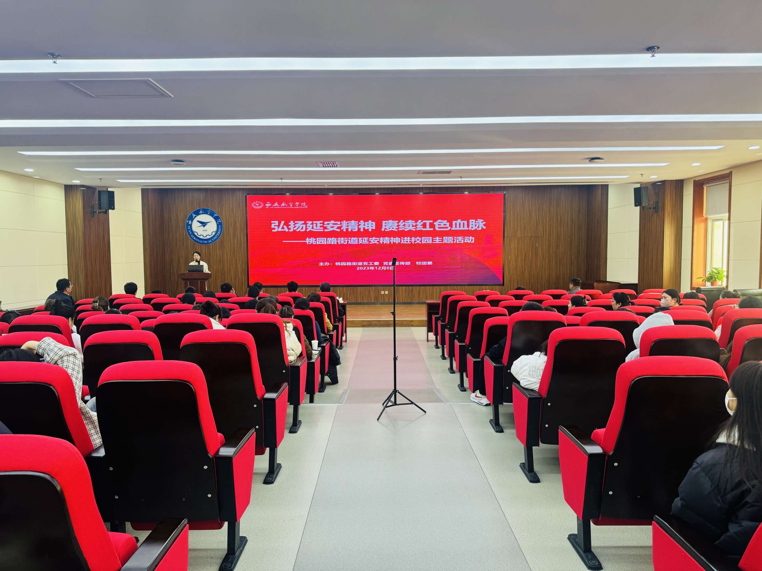 为深入学习贯彻党的二十大精神和习近平总书记瞻仰延安革命纪念地时的重要讲话精神,大力弘扬伟大建党精神和延安精神,引导广大青少年继承革命传统,树立远大理想,点燃心中之火,争做时代新人。12月8日,西安市莲湖区桃园路街道联合西安航空学院,举办了弘扬延安精神 赓续红色血脉——西安市莲湖区桃园路街道“延安精神进校园”主题活动。莲湖区延安精神研究会、团区委、西安航空学院相关领导、桃园路街道领导班子成员、街道“两代表一委员”、街道机关干部、社区两委成员和航空学院优秀团员青年代表共计150余人参加了宣讲报告会。