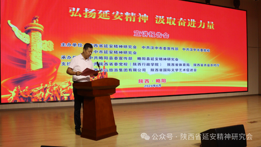 2024年6月3日至5日,为深入学习贯彻党的二十大精神和习近平总书记在瞻仰延安革命纪念地时的重要讲话精神,大力弘扬伟大建党精神和延安精神,配合各地落实好当前中省对全面开展党纪学习教育的各项要求,有效推进延安精神“五进”工作,陕西省延安精神宣讲团受邀分别走进汉中市镇巴县、留坝县和略阳县,与汉中市委宣传部、汉中市委党校、汉中市延安精神研究会共同开展了以“弘扬延安精神 汲取奋进力量”为主题的延安精神宣讲报告会。省延安精神研究会常务副会长张文波,常务副会长兼秘书长周德喜,汉中市延安精神研究会会长刘保民,及各县在家的全体县级领导。与会机关干部深受教育鼓舞,在全市引起热烈反响。