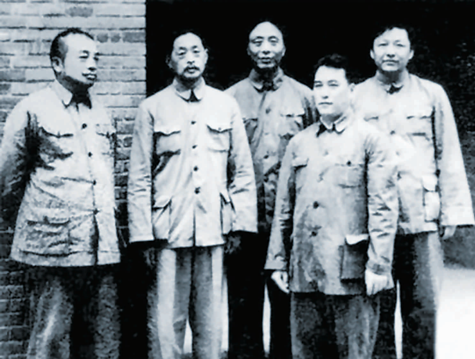 西北野战军“三战三捷”:在蟠龙镇城墙上,图为彭德怀与萧三、艾青、赵仲池、习仲勋(左起)等在一起
