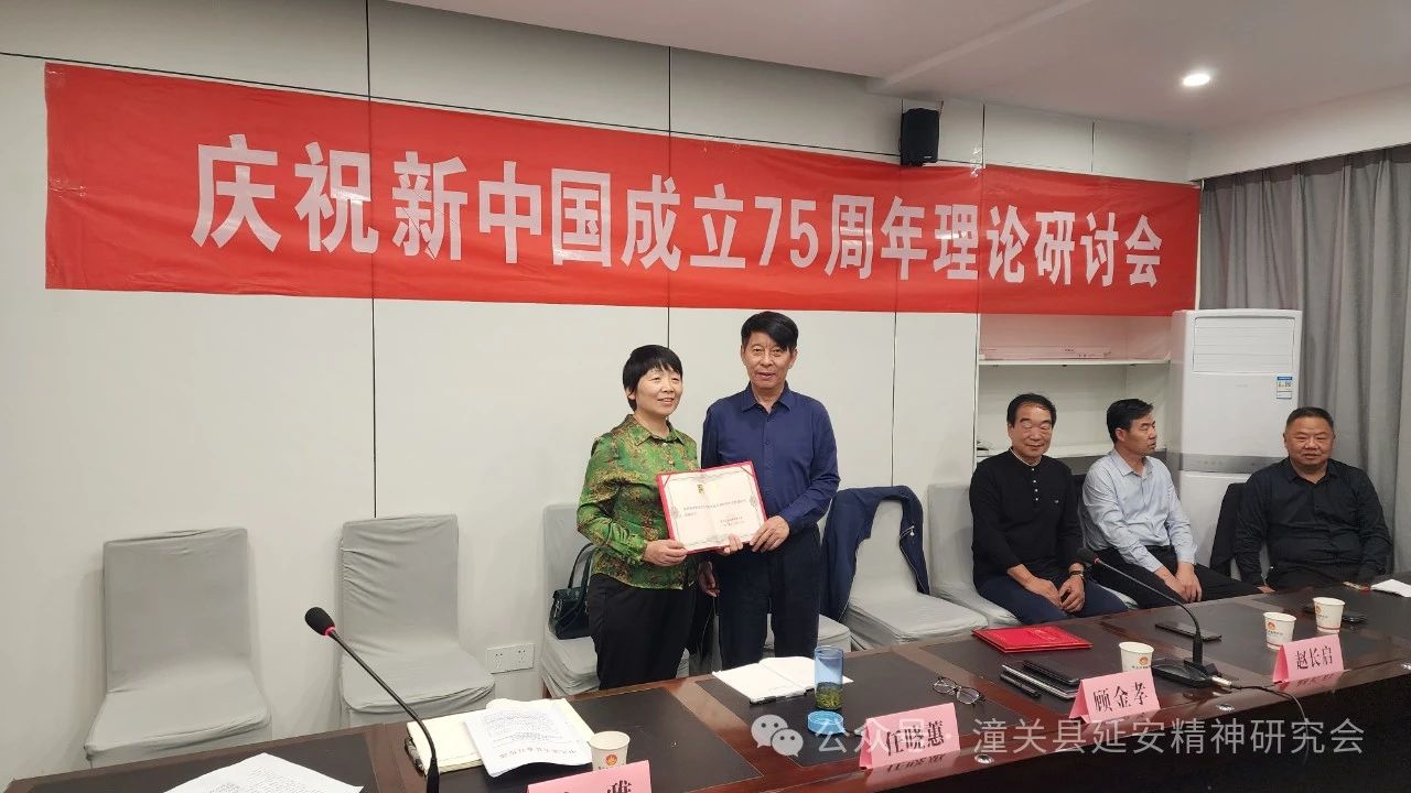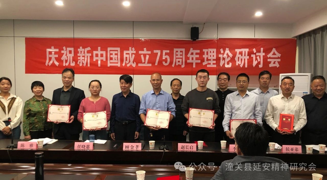 为进一步学习宣传贯彻党的二十届三中全会精神和习近平总书记瞻仰延安革命纪念地时的重要讲话精神,聚焦新中国成立75年以来潼关大地展现出的新气象新作为,激励引导广大党员干部群众凝聚奋进力量,谱写时代华章。10月16日,潼关县延安精神研究会组织召开了“庆祝新中国成立75周年理论研讨会”。获奖作者、特邀研究员及研究员共计24人参加会议。会议由潼关县延安精神研究会秘书长车绪生主持。