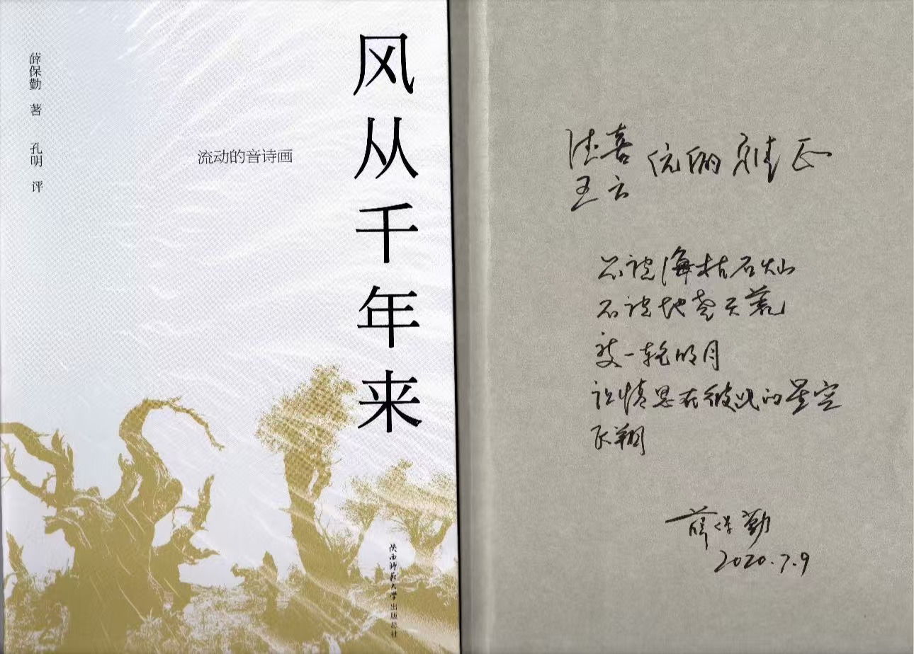 保勤还是一个很幽默的人。 有一次他见了我认真地说:“德喜,你说咱俩关系是不是很好?” 我说:“是啊!”“你说为什么?” 他一副神秘的样子。我说 :“为什么?”他突然笑着拍着自己的胸膛说 :“关键是我好!”我顿时觉得他既可爱又亲切,但嘴上却说 :“这可是你的一面之词,我不一定这样认为!”2017年8月, 省委巡视办安排我巡视省委宣传部,那时保勤已经退休改任记协主席。在巡视动员会上,按惯例我有一个动员讲话,时任宣传部长在表态发言中,就如何配合好省委巡视说了几句客套的话。保勤听了后对我的一个朋友说 :“来个小小的周德喜,部长至于说的那么肉麻吗?”过了几天, 我碰见了他,就说 :“哎老兄, 你污蔑我的话,我可听到了啊 ”, 他哈哈一笑,“就是嘛,一个小小的周德喜,不过如此而已,部长根本无需那样啊!”我说 :“你弄清楚,我是代表省委巡视的, 人家部长是向省委表态,与我个人无关。”我也顺嘴“扎呱 ”他 道 :“平时你比我洋火得多,但 那天你不如我,我和部长并肩坐 在主席台中间,你在台下第一排, 还坐在了边上!”他讪讪一笑, 轻轻给了我一拳说 :“你就好好骄傲吧!”2020年6月,他的诗集《 风从千年来》出版,同年11 月,同名歌曲被确定为中华人民 共和国第十四届运动会,全国第 十一届残运会暨第八届特奥会宣传歌曲。他特意将诗集让我女儿捎给我。听女儿说,他在写赠言时,突然问 :“要不要把你妈的名字也写上?”女儿说 :“我妈是家里一把手,你看着办!”他边写我爱人名字边调侃说 :“我知道你爸在家的地位。”