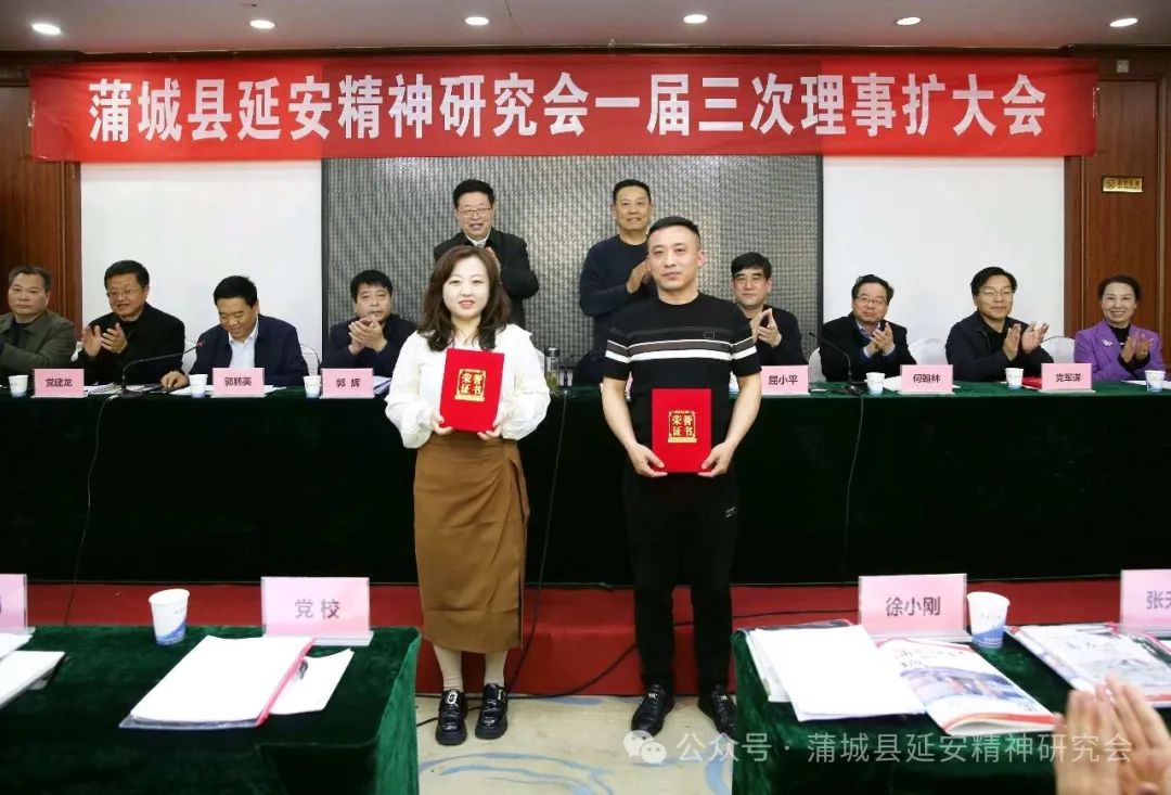 会上,副会长屈小平总结了2024年县延会工作,秘书长党建龙宣读了2025年工作要点,增选了杨金荣、孙瑞峰、王平喜、李晓英、姚胜利、郭琳波、耿东旺、张俊成8名同志为蒲城县延安精神研究会第一届理事会理事,为新增的单位会员蒲城县书法家协会、蒲城县摄影家协会、陕西奉先房地产开发有限公司、陕西南风广告照明装饰工程有限公司、蒲城诚和达果蔬配送有限公司进行了授牌,并为党忠社等5名特邀研究员、程万侠等13名宣讲团成员颁发了聘书,表彰了李智会等18名优秀会员和弥丹等2名先进工作者。