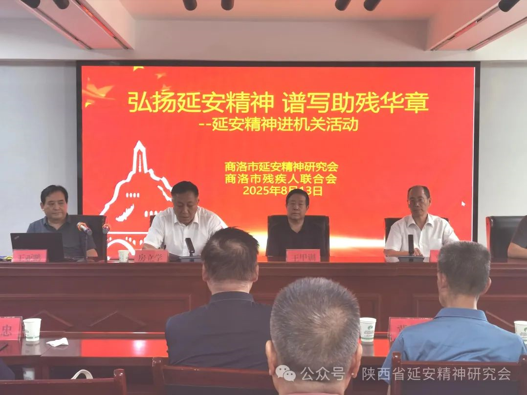 8月13日,商洛市延安精神研究会会同市残联、市老年书画学会在商洛市残疾人联合会开展了以"弘扬延安精神、谱写残联华章"为主题的延安精神进机关活动。市延会全体同志、市老年书画学会专家、市区残联干部职工、残疾人康复医院等80余人参加了活动。市延会会长王甲训作了讲话。市残联理事长房立学作发言。市延会副会长、市委党校教授王亚鹏作了弘扬延安精神主题报告。